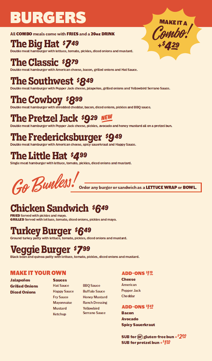 Welcome to Hat Creek Burger Company - Spring, a delightful stop for burger enthusiasts. Located at 8215 Louetta Rd, this vibrant eatery stands out for its commitment to quality and flavor. The menu features mouthwatering items, including the Pancake Big Hat and Chicken & Pancakes, both perfect for a hearty meal. Their new Peaches & Cream shake is a refreshing addition, offering a sweet finale.
